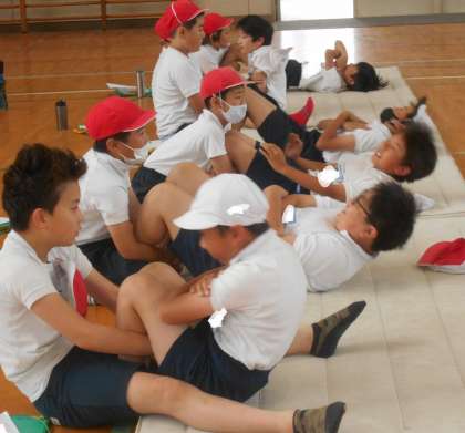 体育館では、二人組を作り上体起こしをしていました。 終了の笛が鳴るまで一生懸命な姿が見られました!