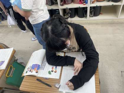 道案内をするときの登場人物の気持ちに寄り添って考えることができました。最後には、親切な行いをするために大切なことを自分目線でノートにまとめることができました。