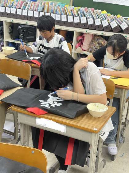 5年生 図画工作「自分だけの法被」その2 公開日 2024/10/16 更新日 2024/10/16 5年 自分で選んだ字にはどんな思いがこもっているのかまた教えてくださいね。 最後まで集中して完成させることができました。