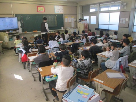 姿勢を正してみんなで音読。とても上手です。
