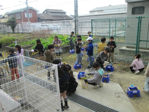 秋見つけの振り返りをしています。虫やお花。たくさんの発見があったね!