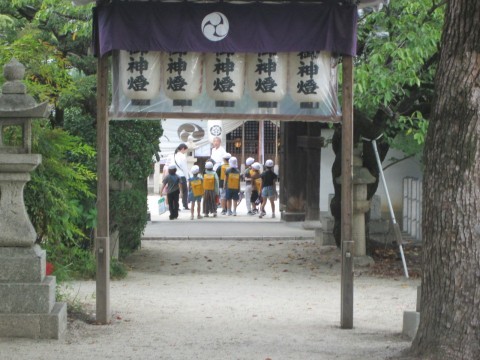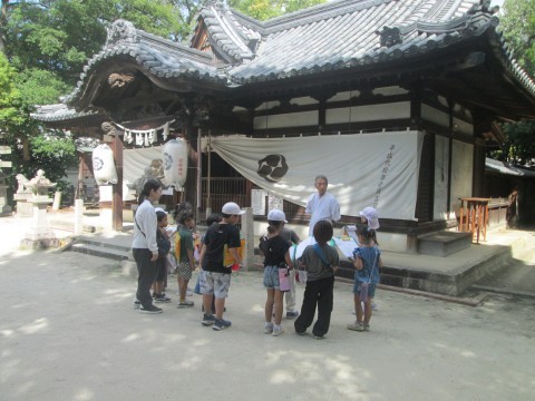 校区探検で日部神社に行きました。神主さんにたくさんのことを教えてもらいました。