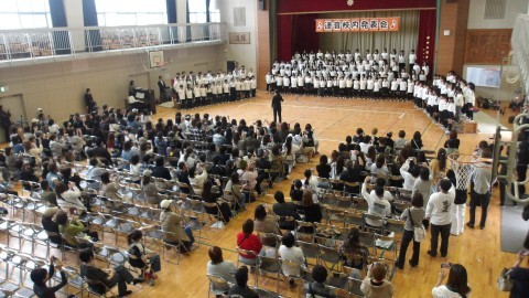 24日(金)の5時間目に連合音楽会に向けた「校内発表会」を開催いたしました。5年生の保護者の皆さまが多数参加いただき,子どもたちが練習を積み重ねてきた「歌声」を聞いていただきました。