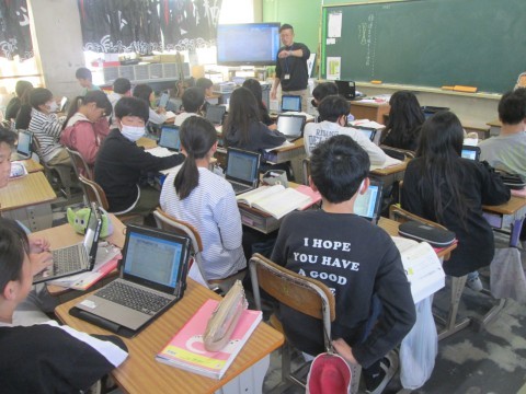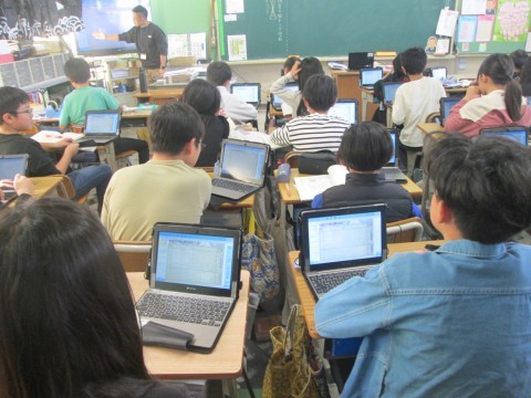 子どもたちは自分の考えを入力し,みんなと共有します。