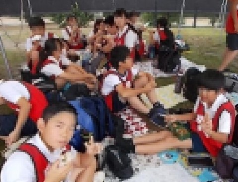 次は昼ご飯を食べて力を合わせて,綱引き頑張ろう。