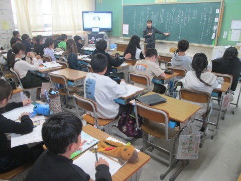 音楽に合わせて,上下に動かしたり,回ったりと他校の児童と協力して取り組むことができました。