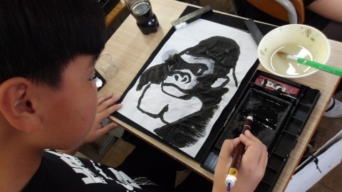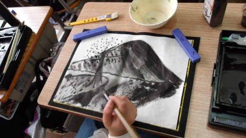 墨を使って描く絵に挑戦しました。