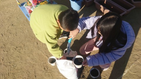チューリップの球根を植えました。春にはきれいな花を咲かせてくれるでしょう。