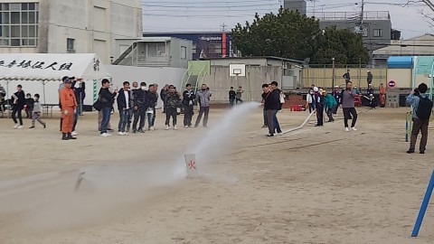 堺市消防局の方にお越しいただき,消火器の使い方のデモンストレーションも見せていただきました。