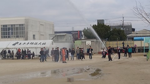 福泉校区の総合防災訓練が行われています。