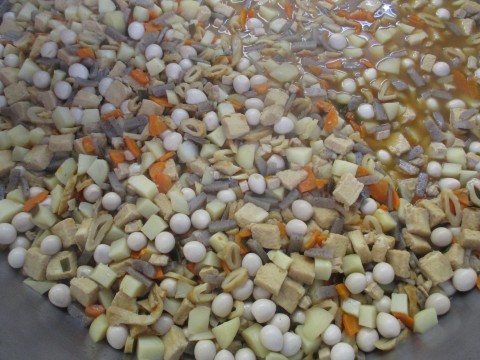 今日の献立の「昆布入りおでん」は、食品ロスを少なくする工夫として、出汁をとったあとの昆布を小さく切っておでんに入れました。美味しく食べられて食品ロスが少なくなり、一石二鳥ですね。