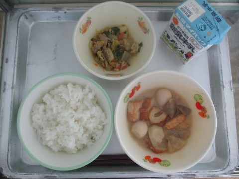 今日の「冬野菜カレーライス」には、いつものにんじん・たまねぎ・じゃがいもの他に、かぶ、カリフラワー・れんこんといった冬が旬の野菜が入っていました。