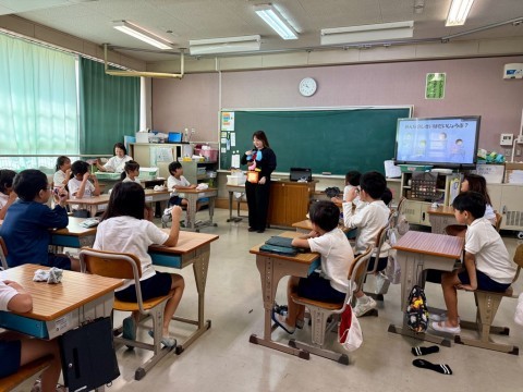 測定前に保健室の先生による保健指導を各学年で行っています。