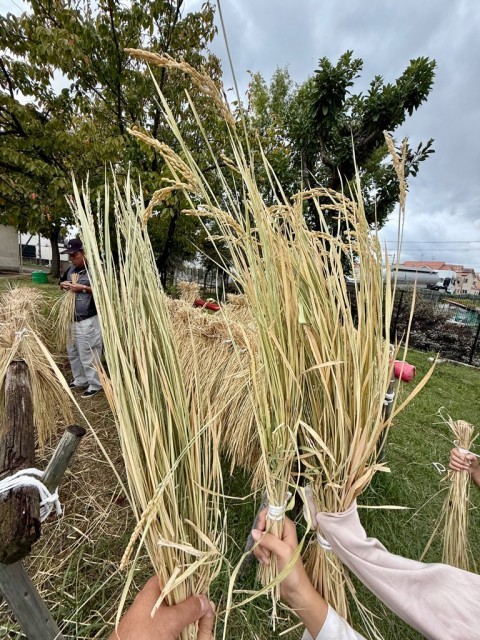 以前に稲刈りをした稲の脱穀作業をしました。
