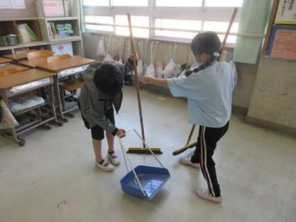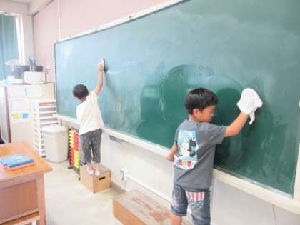 1年生の教室では黒板を隅々まできれいに拭いている子どもたちを見かけました。時間いっぱいまで頑張って掃除しています。ピカピカになった学校、気持ちがよいですね。