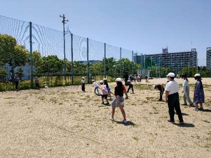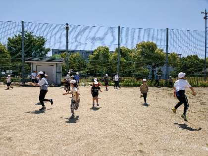 たてわり遊びの開始です。6年生が考えた遊びを楽しんでいます。ドッジボールやしっぽ取りゲーム、だるまさんがころんだなど、みんなで楽しめる種目ばかりです。