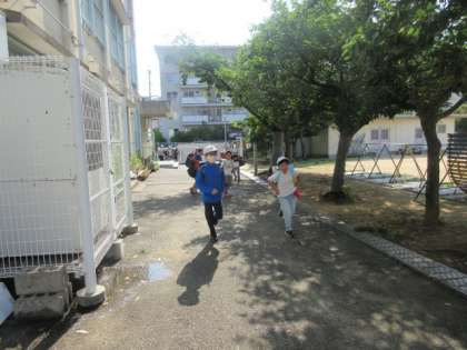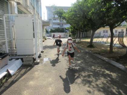 8時になり、子どもたちが元気に登校してきました。低学年の子どもたちはプールセットを持っての登校です。今日も気温が暑くなりそうですが、体調に気をつけて頑張っていきたいと思います。
