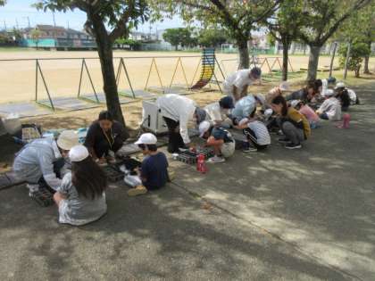 今日は秋植えのキンセンカ、ストック、ナデシコの種植えです。種が小さいので串を使って植えています。