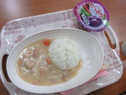 チキンクリームシチューとゼリーです。朝からパワー全開です!