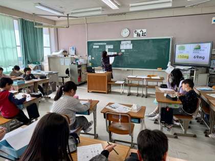 福泉小学校から栄養教諭の先生をお招きし、食育の授業をしました。