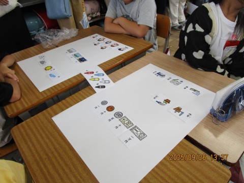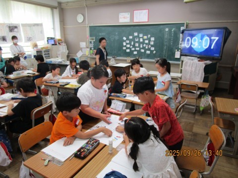 漢字の仲間分けをグループで活動しながら取り組んでいました。