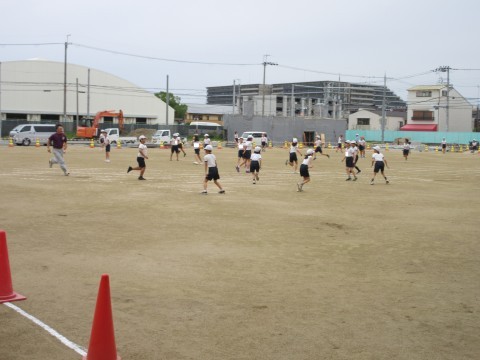 休み時間の外遊びは来週からになりますが、体育の時間は担任の先生と一緒に。。。