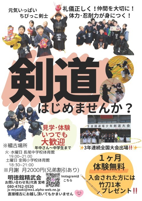 剣道クラブ「明徳館精武会」のお知らせです