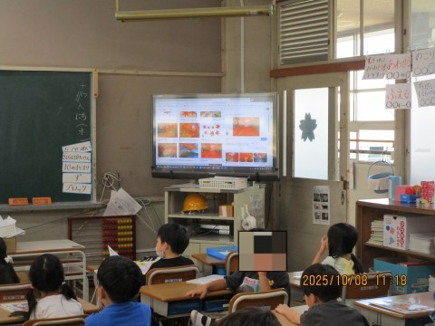 生活科では,秋の様子をみんなでたくさん思い浮かべて発表していました。家に帰ってからも探してみてくださいね。