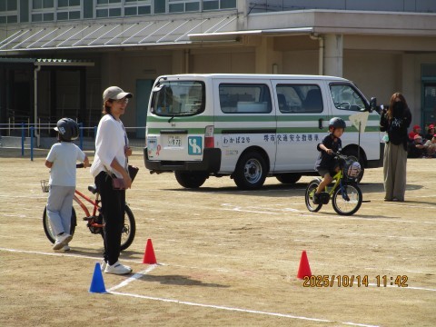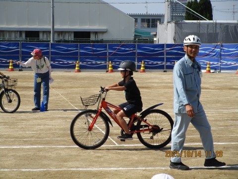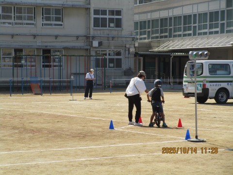 3年生は,自転車を使って訓練を行いました。