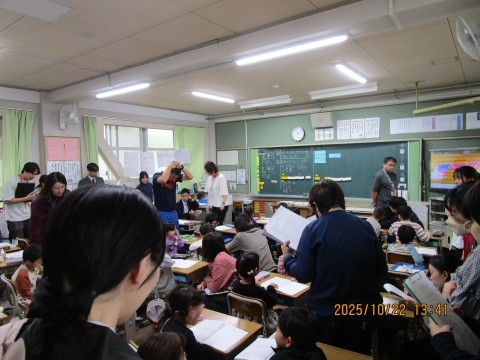 5時間目に,1年生4組で研究授業を行いました。その後,事後検討会を行いました。指導助言として、能力開発課の指導主事を招きました。また、東三国丘保育園、ビクトリー保育園,子音つばさ保育園の保育士さんも参加してくれました。授業内容は1年生算数の最難関の一つ「くり上がりのあるたし算」でしたが、子どもたちはとても意欲的に学習に取り組み、指導主事も保育士さんたちも驚いていました。これからも算数を大好きでいてください。