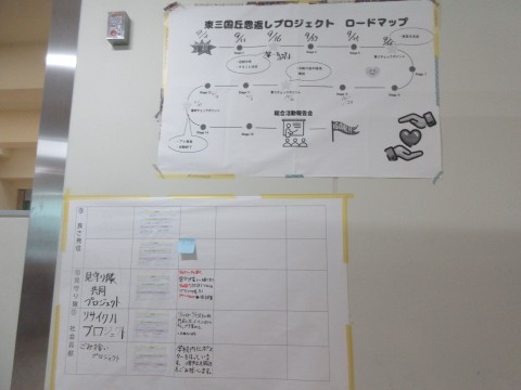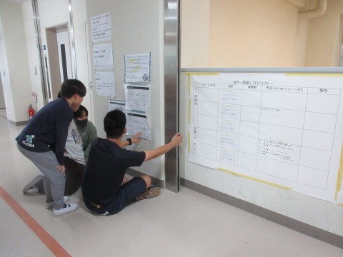 予定表に自分たちの活動内容やこれからの予定を書き込んでいます!