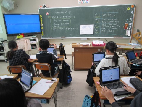 外国語の学習では,自分の行きたい国の旅行プランをタブレットで調べました。