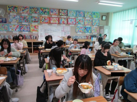 今日の給食は,ちんげんさいとうずらの卵のスープがおいしかったです。