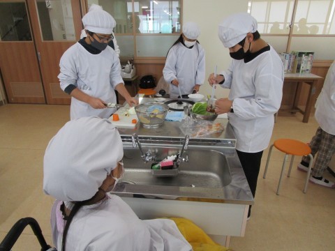 にんじんのいちょう切りに苦戦したり,炒め具合の見極めに悩んだりしながらなんとか美味しい野菜炒めと
