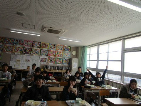 6年2組と3組が給食を食べています!