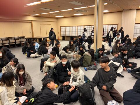 ホテルに到着しました。今から注意を聞いて部屋へ移動します。