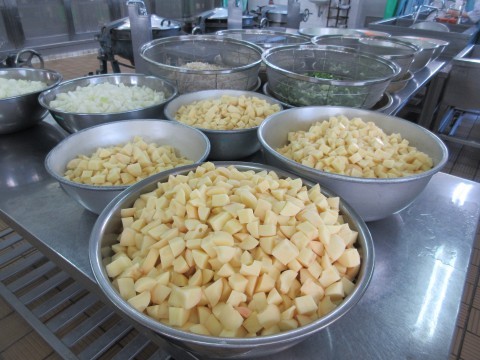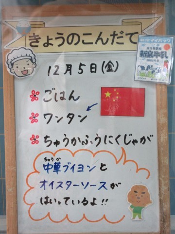 ワンタンは中国の伝統的な料理で、小麦粉でできた薄い皮に、肉や野菜を包んだものが一般的です。給食では皮だけのワンタンで、つるっとした食感を楽しんでください。