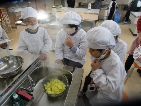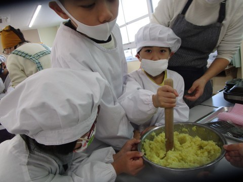 12月9日の1・2時間目に、10月末に収穫したさつまいもを使ったスイートポテトづくりをしました。