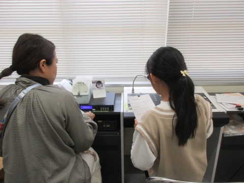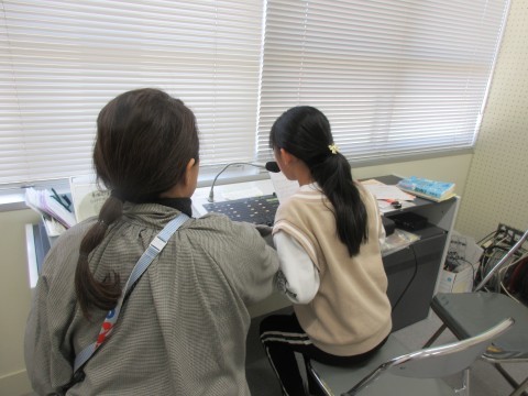 笑顔アッププロジェクトの人たちがみんなのために音楽を流しています。