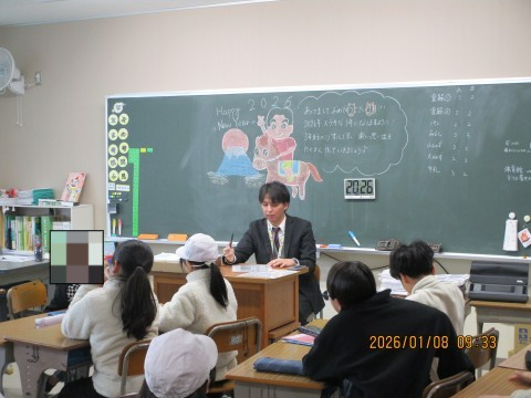 体育館での始業式を終えて、各学級で3学期の目標や係活動を決めていました。