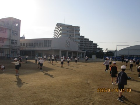 かけ足で身体を温めた後に、なわとび検定に挑戦していました。