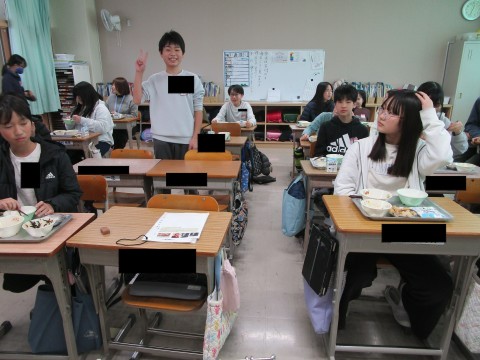 1組と4組の給食の様子です!