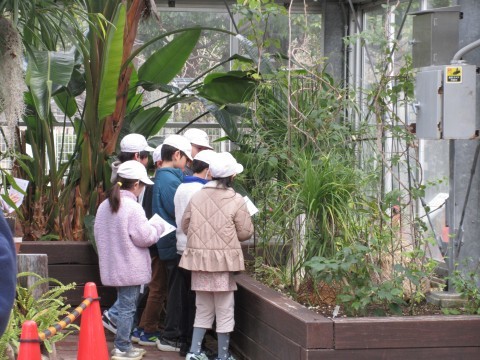 ②緑化センター・・・植物の観察や植物の中に隠れてカモフラージュしているものを探すネイチャーゲームをしました。上手にカモフラージュしているものがたくさんあったので、なかなか見つけられませんでしたが、楽しく活動ができていました。