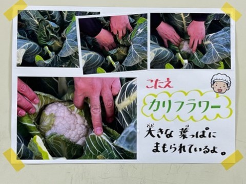 葉っぱをめくっていくと、白い「カリフラワー」があらわれます!