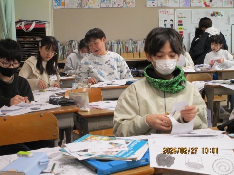 6年2組が外国語の授業で6年生の復習ということでラーメンを作っています。