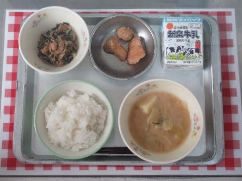 今日の小おかずには鉄分が多く含まれている大豆、小松菜などが入っています。