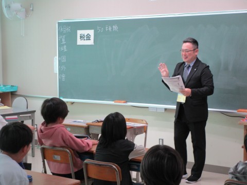 今日は、出前授業で税金についての学習をしました。
