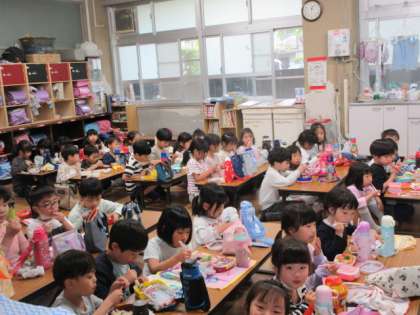 のびすくのお昼の様子です! 2〜6年生の人たちは 明日から給食開始です! 今日までありがとうございました!