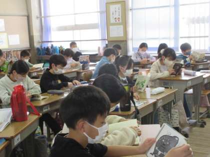 今日から通常学習が開始! 朝の時間には読書タイムがあります! 5年生の人たちが 今年度最初の朝読です!