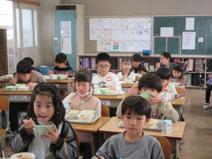 今日の給食は「ごはん」と「牛乳」